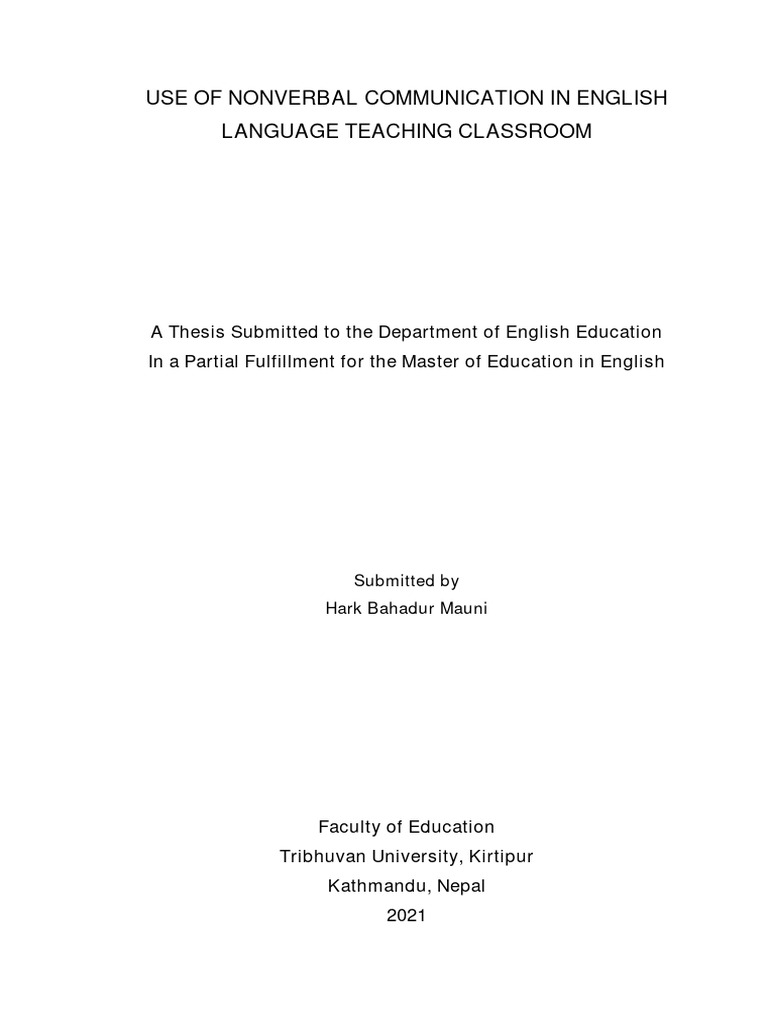 Ed. thesis entitled '' Use of Nonverbal Communication in English Language