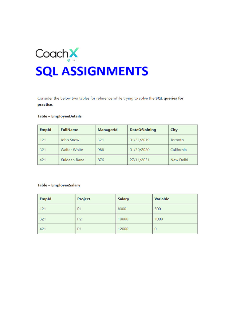 Ques.1 Write an SQL query to fetch all the EmpIds which are
