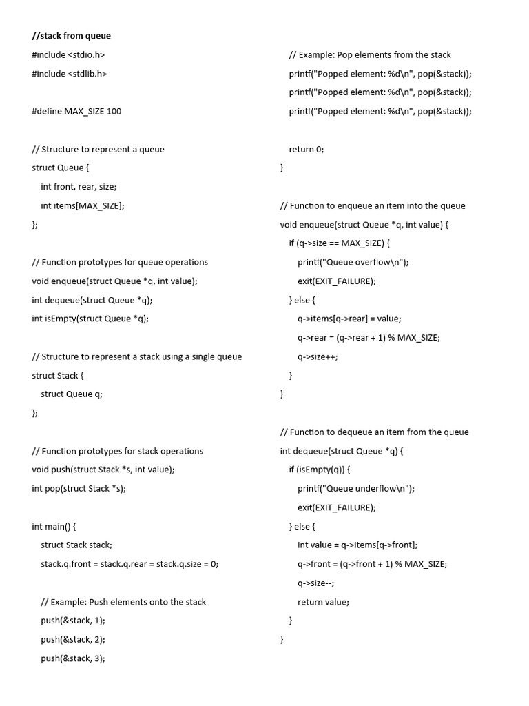 // Rotate the elements in the queue so that the int pop(struct Stack *s);