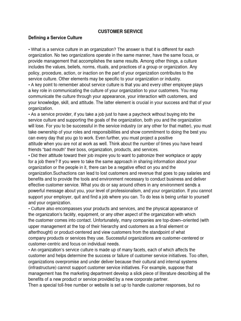 to the customer. Creating ongoing superior customer service is an art that begins with