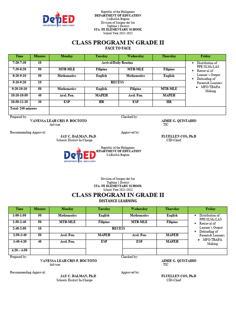 9:20-10:10 50 Mathematics English Filipino MTB-MLE