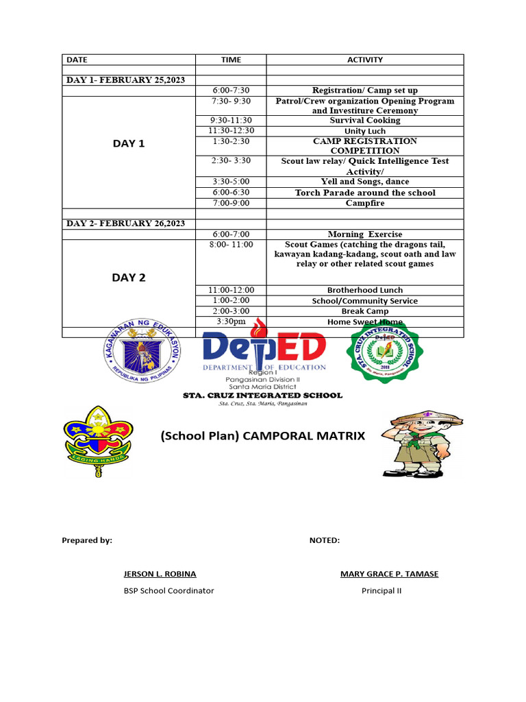 7:30- 9:30 Patrol/Crew organization Opening Program