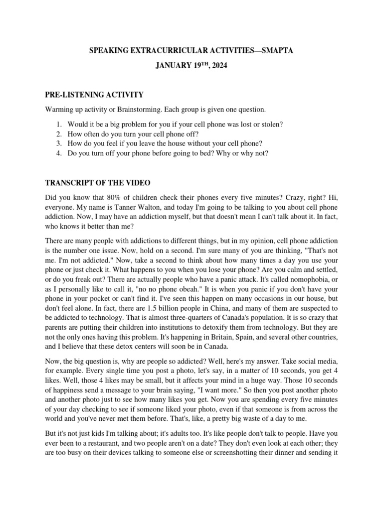 SPEAKING EXTRACURRICULAR ACTIVITIES—SMAPTA