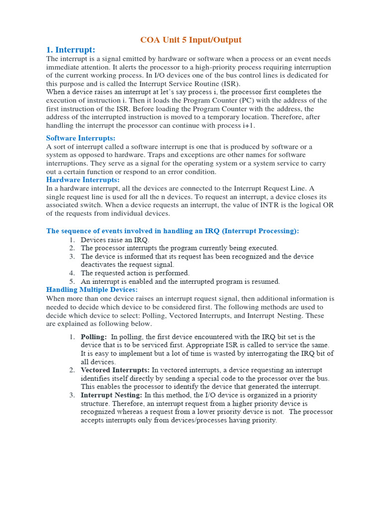 • Devices that use vectored interrupts are assigned an interrupt vector. This is a