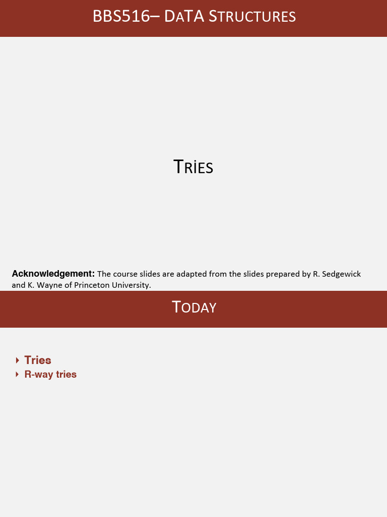 Acknowledgement: The course slides are adapted from the slides prepared by R. Sedgewick
