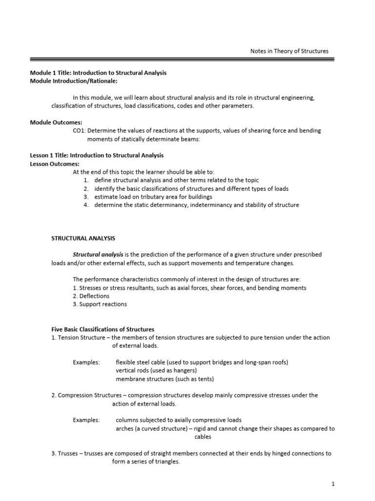 Module 1 Title: Introduction to Structural Analysis