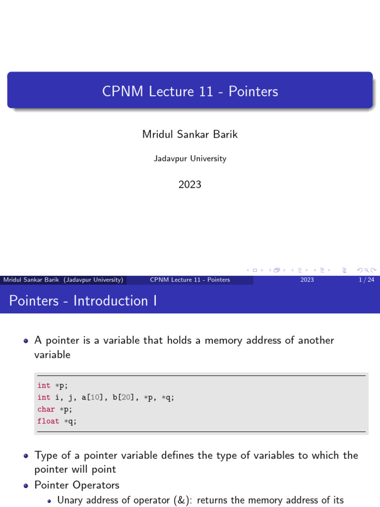 Mridul Sankar Barik (Jadavpur University) CPNM Lecture 11 - Pointers 2023 1 / 24
