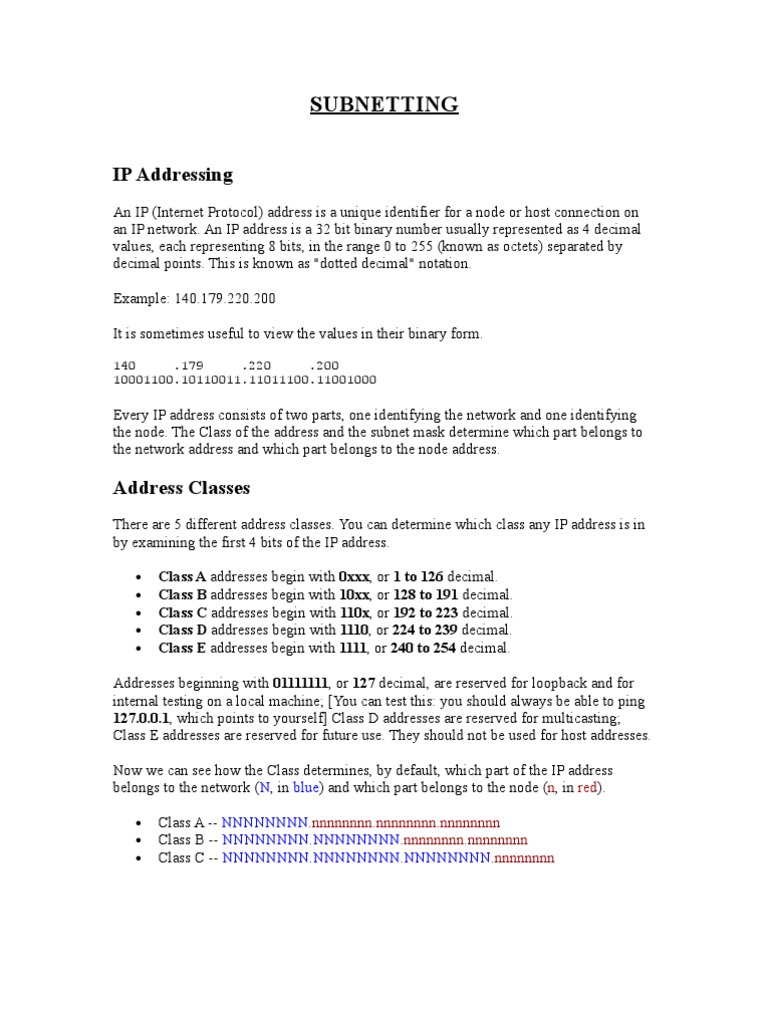 • Class A -- NNNNNNNN.nnnnnnnn.nnnnnnnn.nnnnnnnn