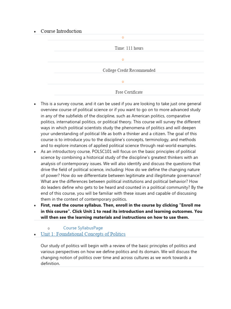 in this course". Click Unit 1 to read its introduction and learning outcomes. You