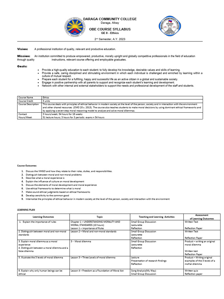 1. Discuss the VMGO and how they relate to their roles, duties, and responsibilities.