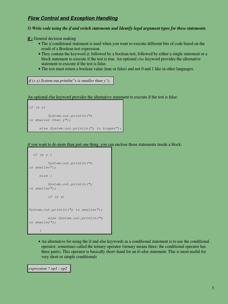 5) Write code using the if and switch statements and Identify legal argument types for these statements.