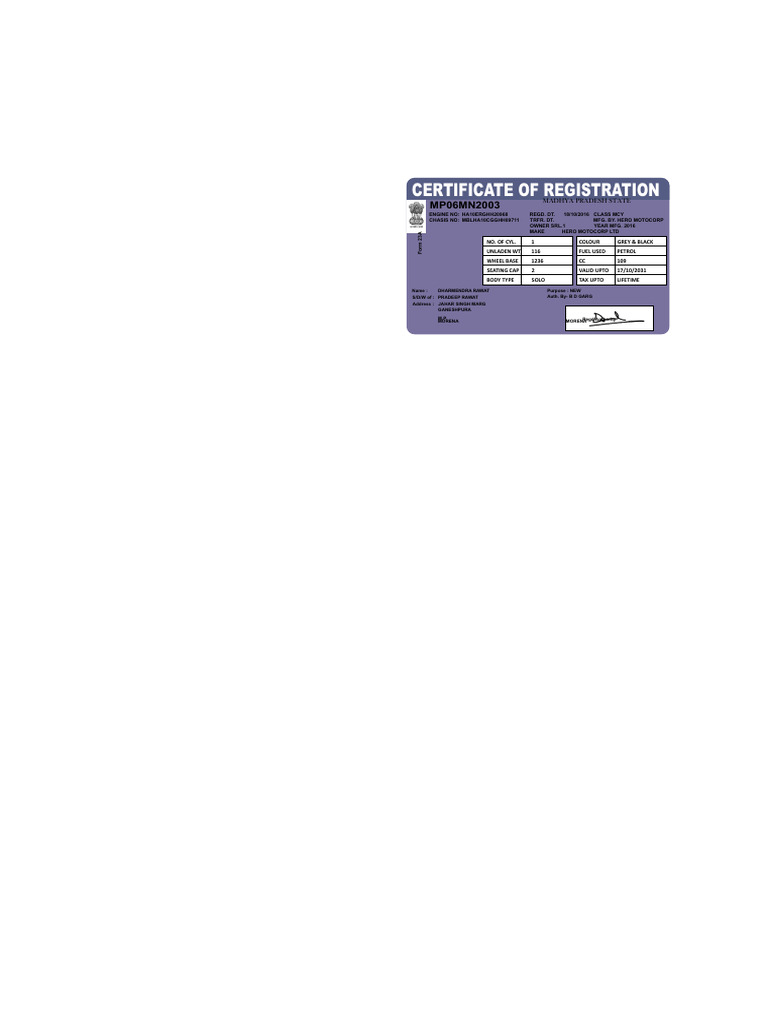 CHASIS NO: MBLHA10CGGHH09711 TRFR. DT. MFG. BY. HERO MOTOCORP