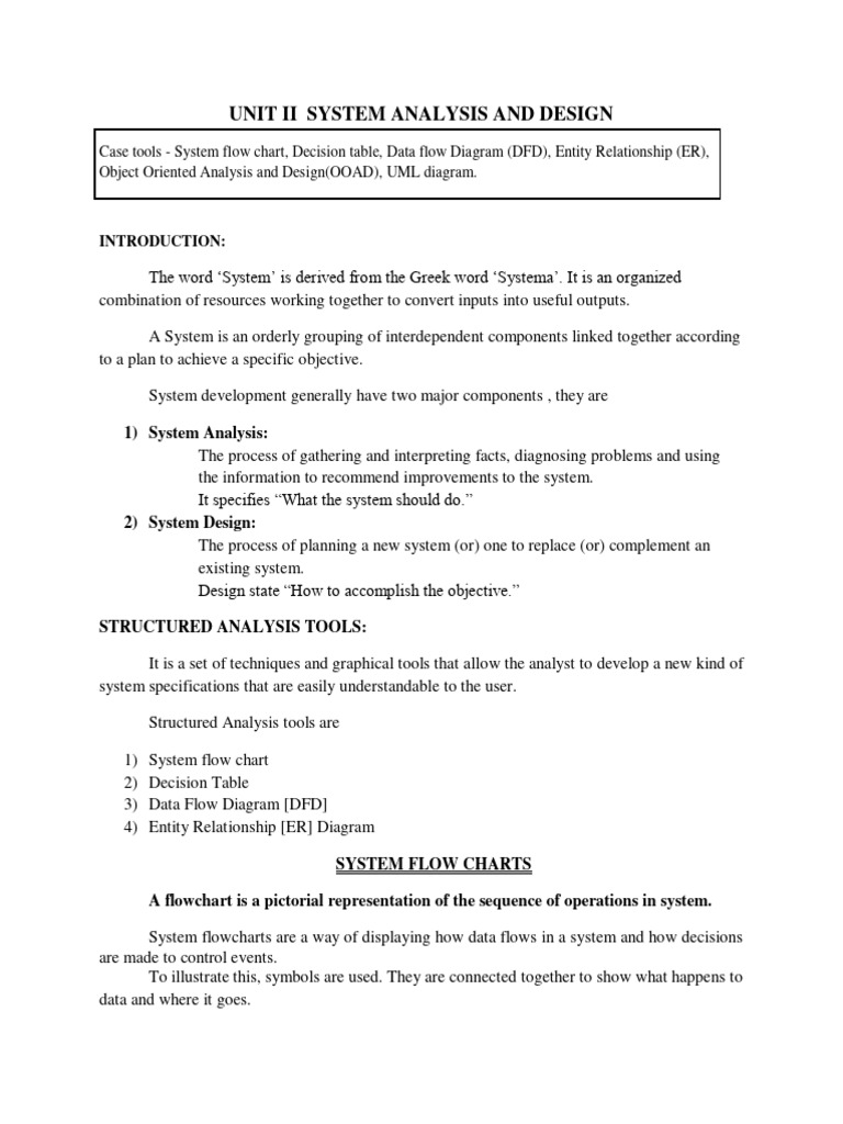 UNIT II SYSTEM ANALYSIS AND DESIGN