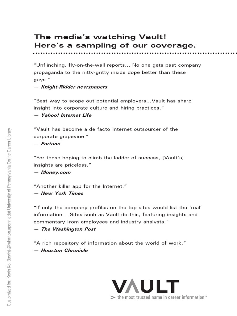 Vault, the Vault logo, and “The Most Trusted Name in Career InformationTM” are trademarks