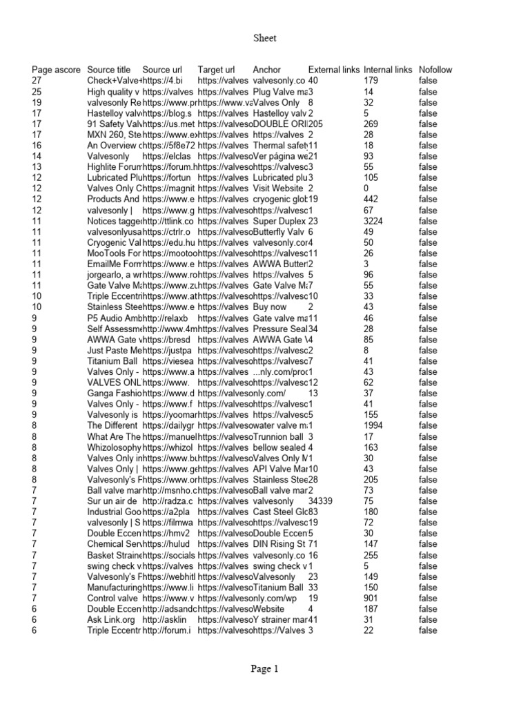 Page ascore Source title Source url Target url Anchor External links Internal links Nofollow