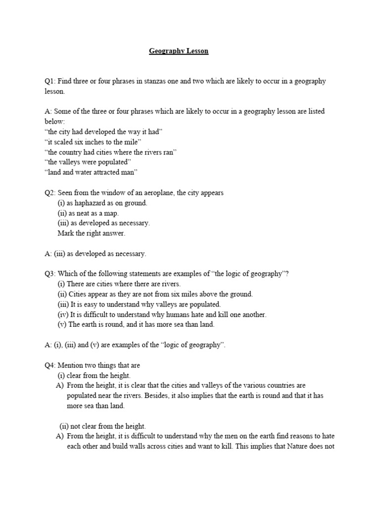Geography Lesson- Summary