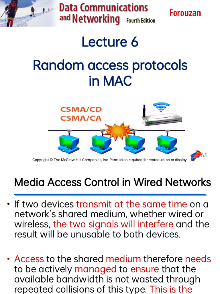 5. CSMA CD is typically used in wired 5. CSMA/CA is used in wireless