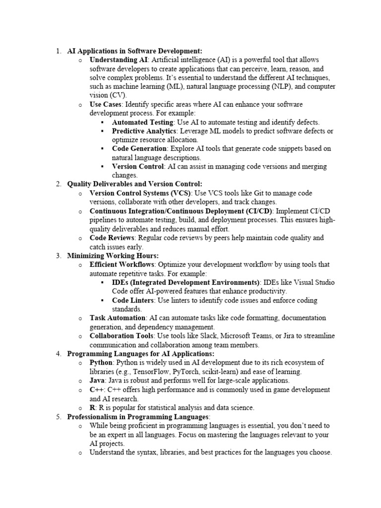 o Task Automation: AI can automate tasks like code formatting, documentation