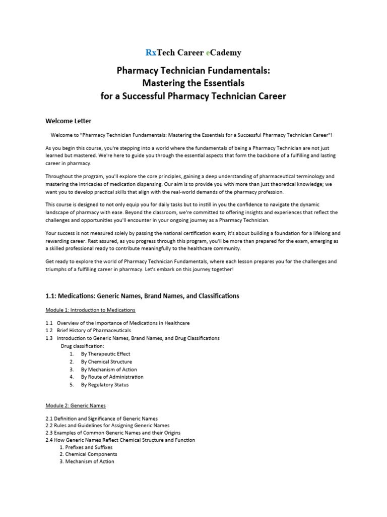 Get ready to explore the world of Pharmacy Technician Fundamentals, where each lesson prepares you for the challenges and