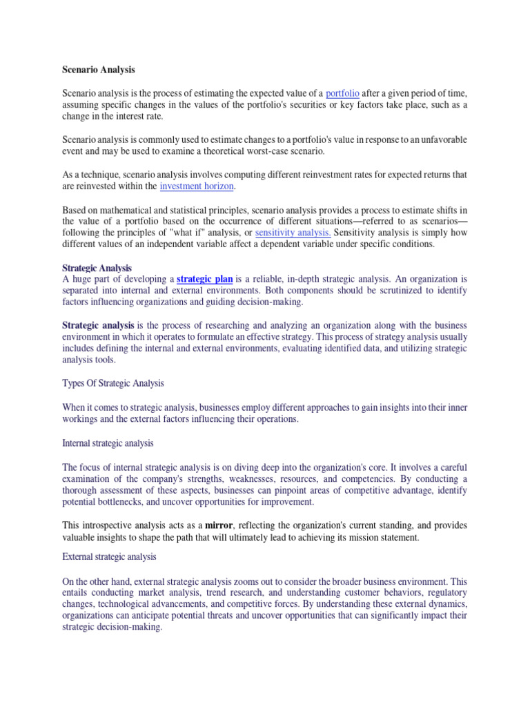 the value of a portfolio based on the occurrence of different situations—referred to as scenarios—