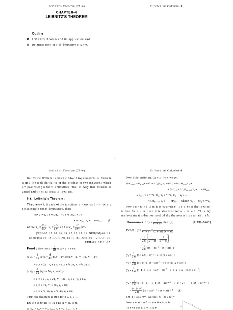 Leibnitz’s Theorem (Ch–6) Differential Calculus–I