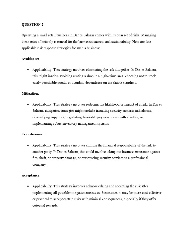 business in Kariakoo, Dar es Salaam, and propose a workable risk management system for