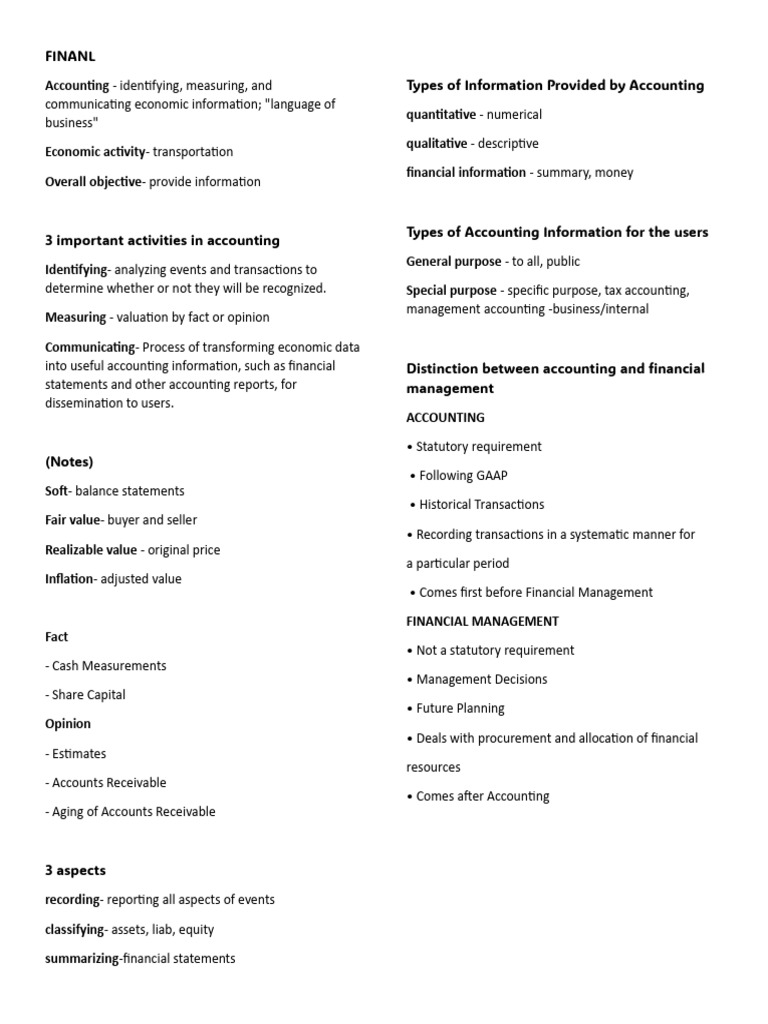 into useful accounting information, such as financial Distinction between accounting and financial