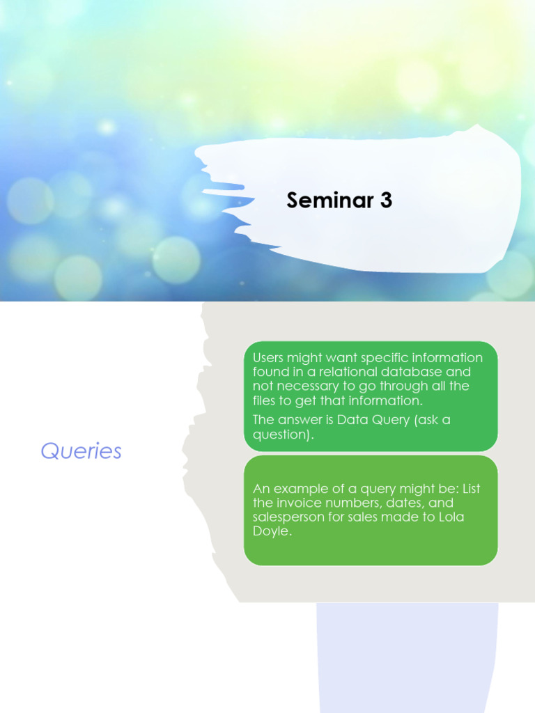• Query 10 responds to a data request: List SalesDate as
