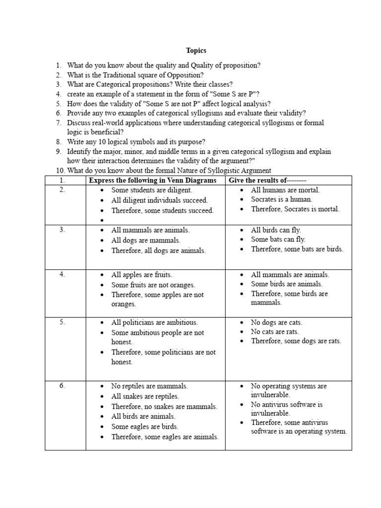 6. Provide any two examples of categorical syllogisms and evaluate their validity?