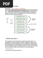 This layer is the lowest layer in the OSI model. It helps in the transmission of data between two machines that are communicating through a physical medium, which can be optical fibres, copper wire or wireless etc. The following are the main functions of the physical layer: 1. Hardware Specification: The details of the physical cables, network interface cards, wireless radios, etc are a part of this layer.