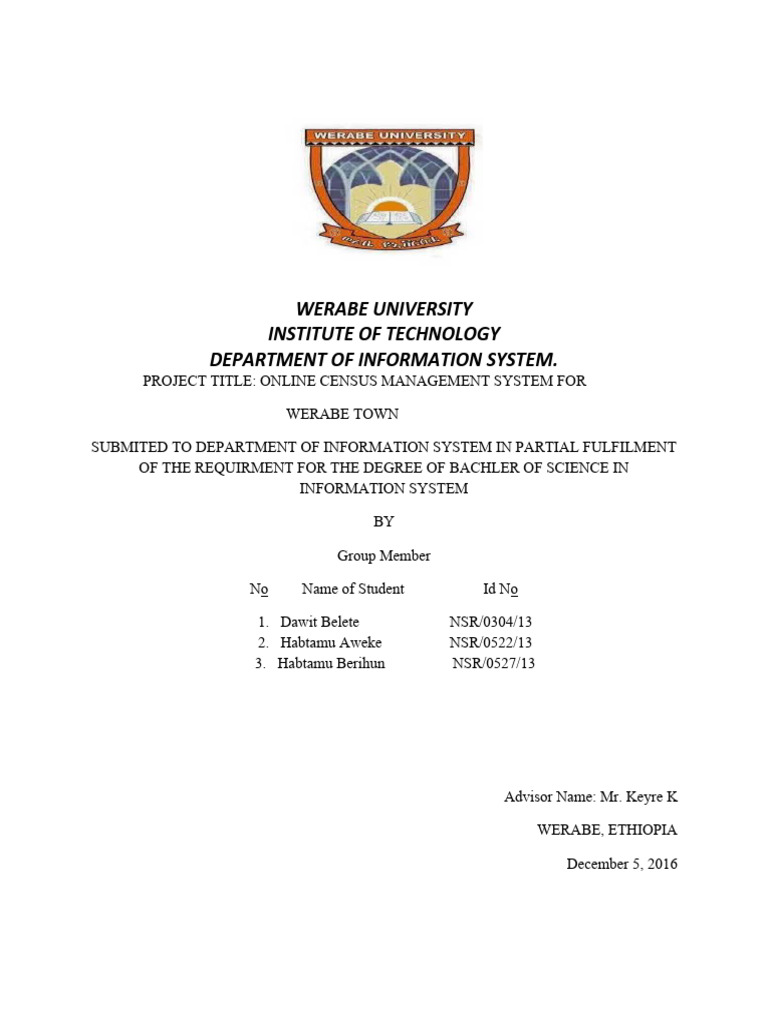 information system is an original work carried out by Dawit Belete, Habtamu Aweke, Habtamu