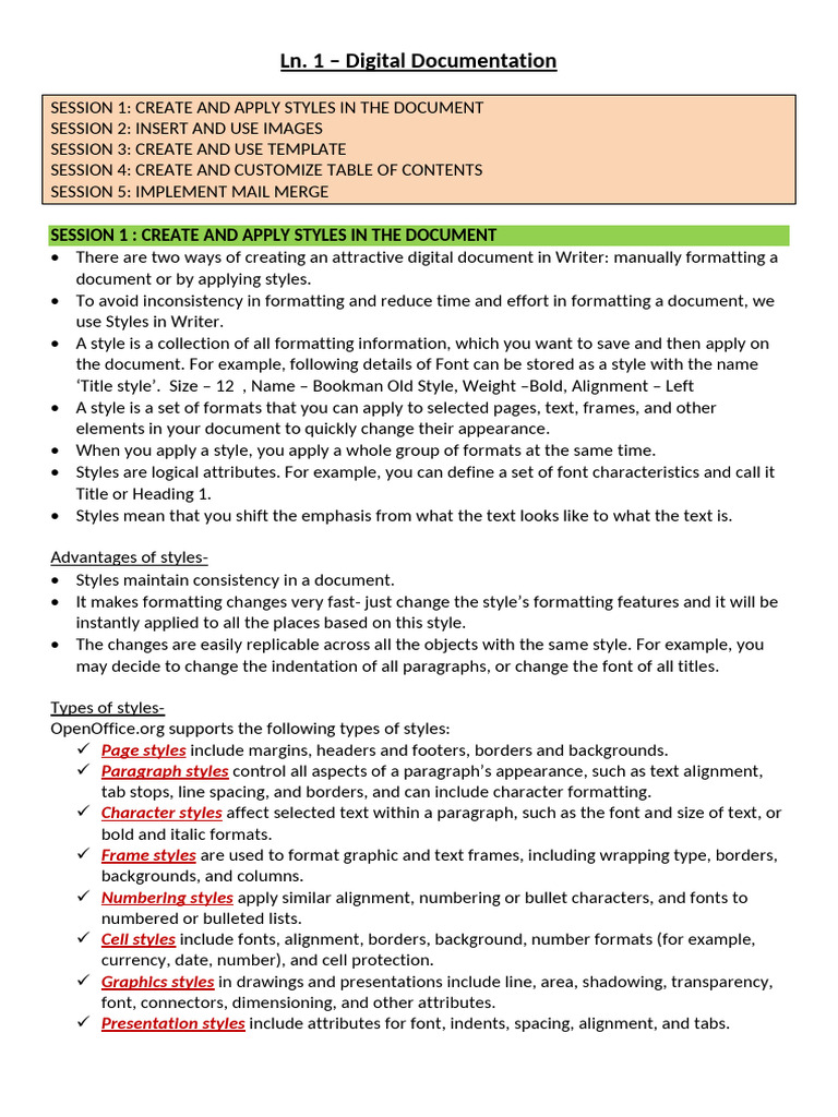 SESSION 1 : CREATE AND APPLY STYLES IN THE DOCUMENT