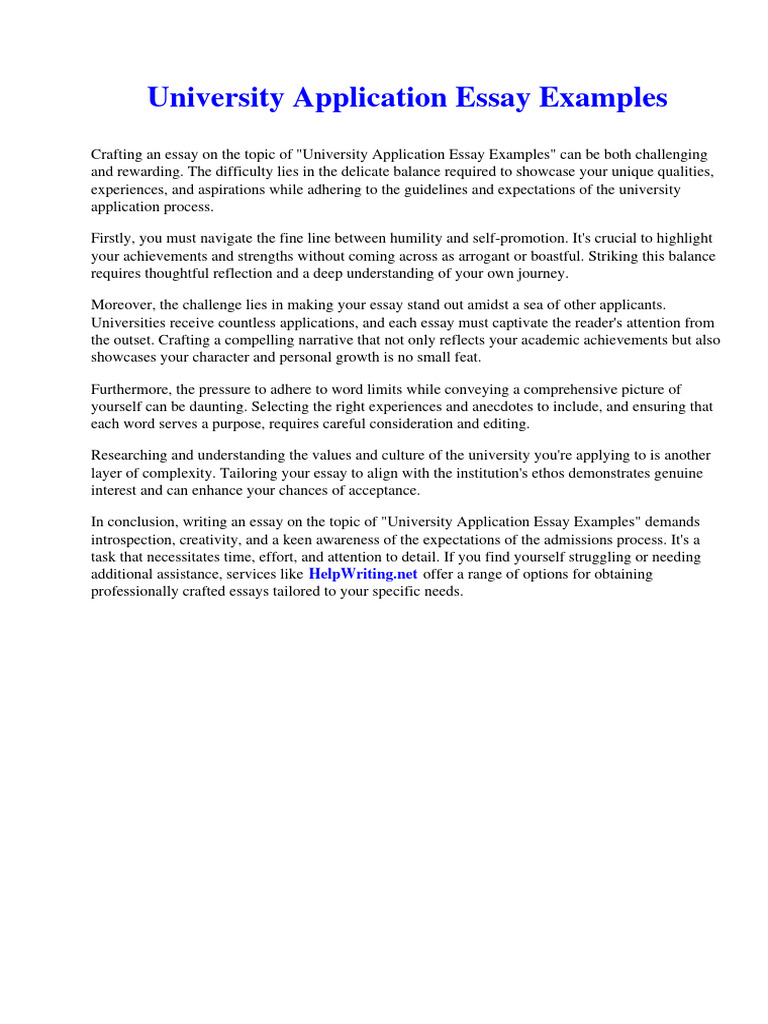 Crafting an essay on the topic of "University Application Essay Examples" can be both challenging