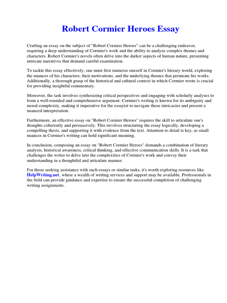 Crafting an essay on the subject of "Robert Cormier Heroes" can be a challenging endeavor,