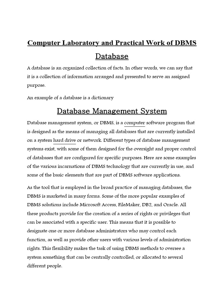 Computer Laboratory and Practical Work of DBMS