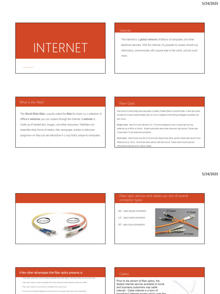 The World Wide Web—usually called the Web for short—is a collection of consists of a bundle of glass threads, each of which is capable of transmitting messages modulated onto