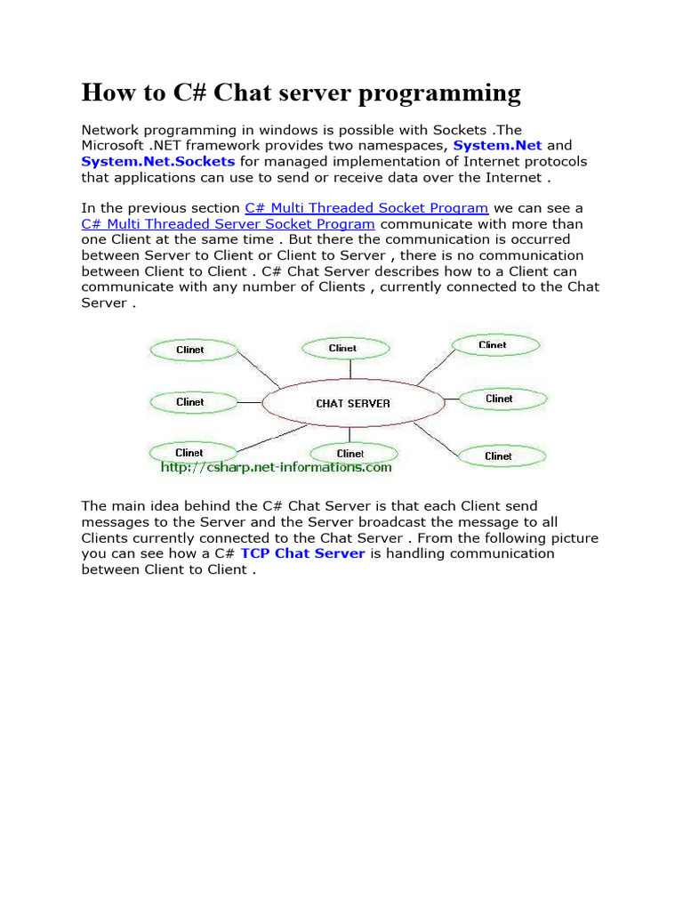The main idea behind the C# Chat Server is that each Client send
