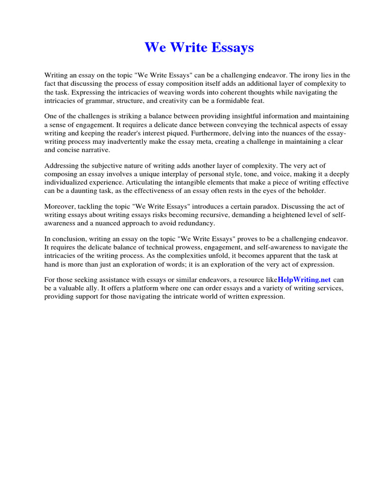 Writing an essay on the topic "We Write Essays" can be a challenging endeavor. The irony lies in the