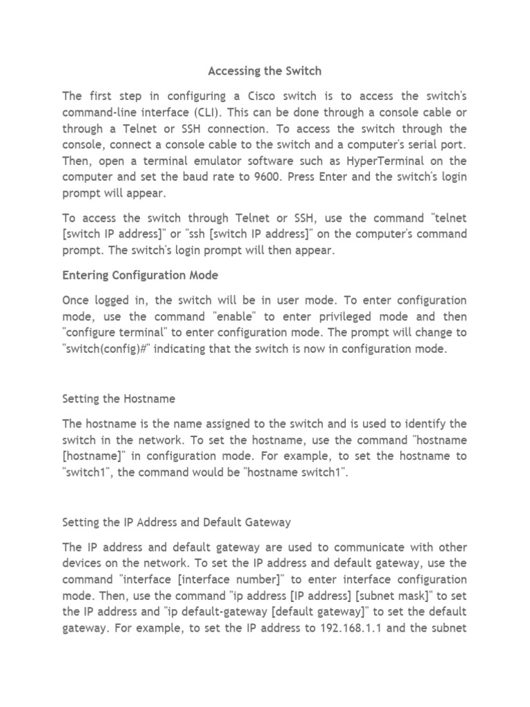 the IP address and "ip default-gateway [default gateway]" to set the default