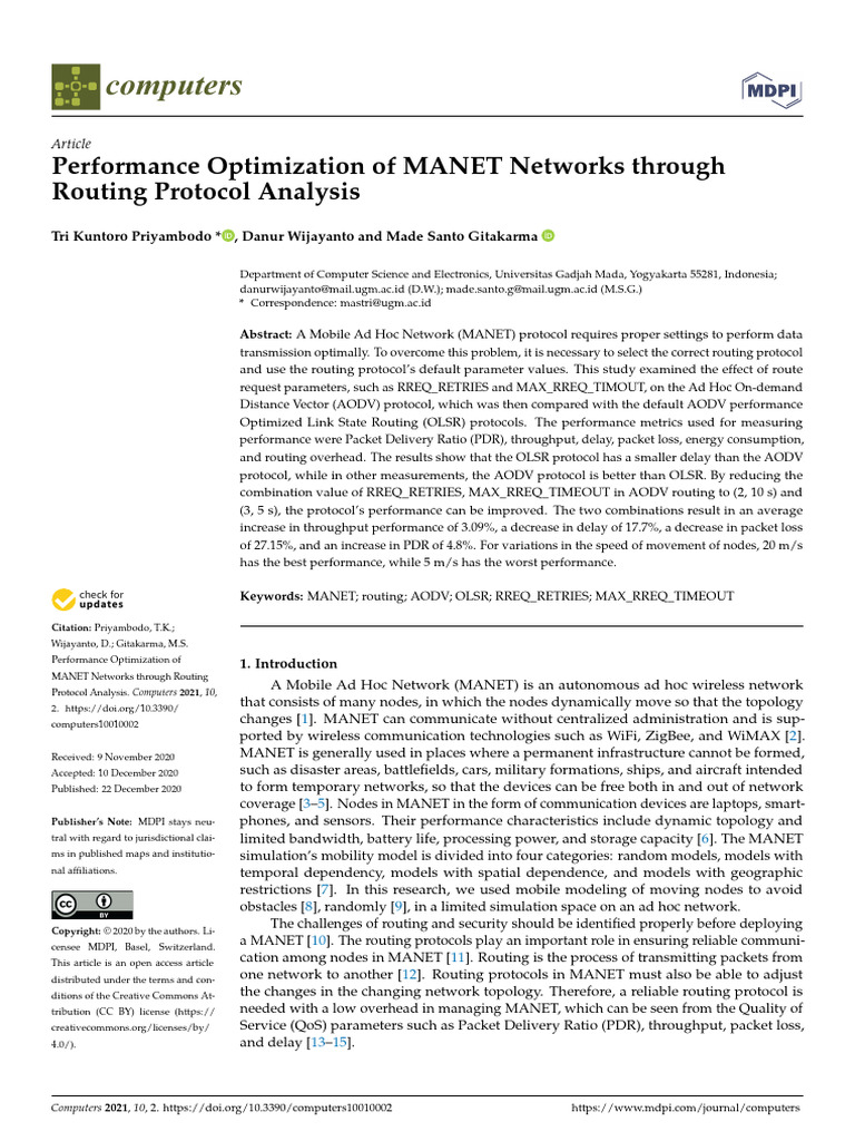 15. Andriyanto, E.; Diafari Djuni, H.I.G.A.K.; Wirastuti, N.M.A.E.D. Pengaruh buffer size pada sistem MANET dengan menggunakan