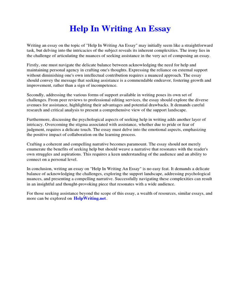 Writing an essay on the topic of "Help In Writing An Essay" may initially seem like a straightforward