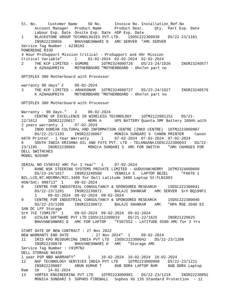 SERIAL NO CVS6Y42 AMC for 1 Year" 1 07-02-2024