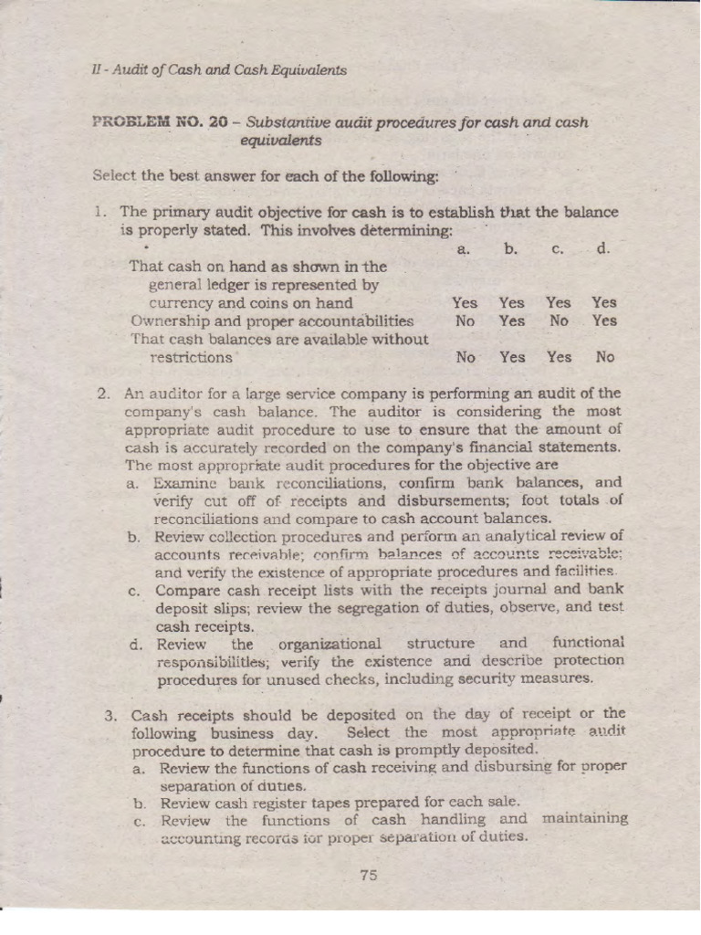 PROBLEM NO. 20 ~ Substantive audit procedures for cash and cash