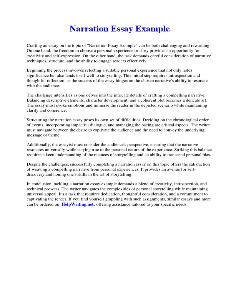 Crafting an essay on the topic of "Narration Essay Example" can be both challenging and rewarding.