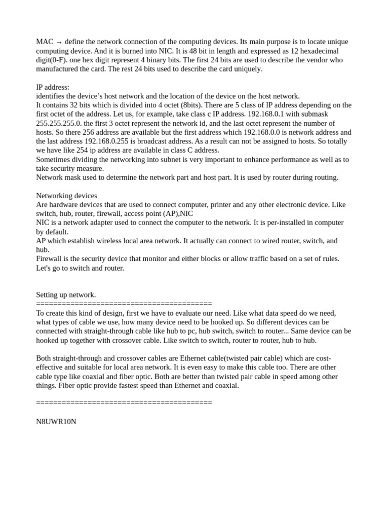 computing device. And it is burned into NIC. It is 48 bit in length and expressed as 12 hexadecimal