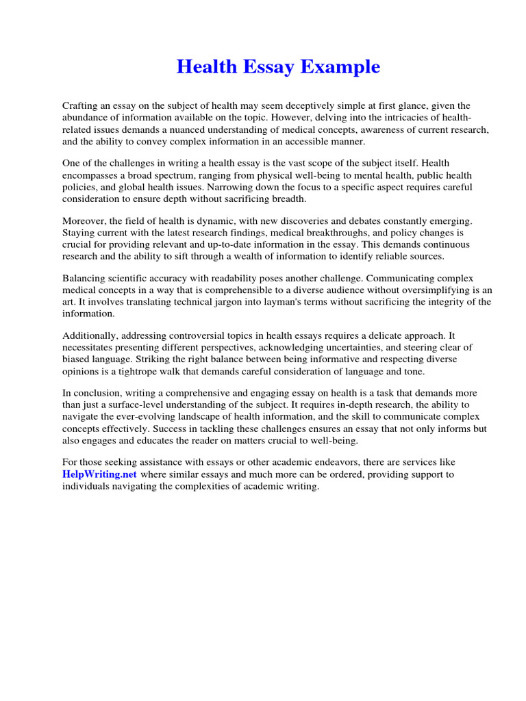 Crafting an essay on the subject of health may seem deceptively simple at first glance, given the