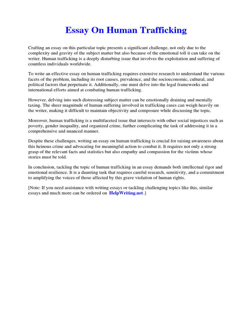 Despite these challenges, writing an essay on human trafficking is crucial for raising awareness about