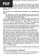 SOFTWARE REQUIREMENTS A requirement can be defined as (1) A condition of capability needed by a user to solve a problem or achieve an objective (2) A condition or a capability that must be met or possessed by a system. Need for SRS The origin of most software systems is in the needs of some clients. The software system itself is created by some developers. Finally, the completed system will be used by the end users. Thus, there are three major parties interested in a new system: the client, the developer, and the users. The problem is that the client usually does not understand software or the software development process, and the developer often does not understand the client's problem and application area. This causes a communication gap between the parties involved in the development project. A basic purpose of SRS is to bridge this communication gap. Advantages of SRS An SRS establishes the basis for agreement between the client and the supplier on what the software product will do An SRS provides a reference for validation of the final product. A high-quahty SRS is a prerequisite to high-quahty software A high quality SRS reduces the development cost.