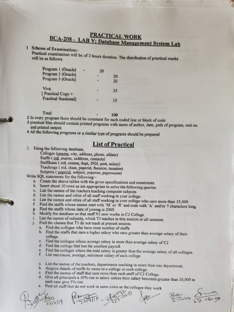 3 practical files should contain printed programs with name of author, date, path of program, unit no.