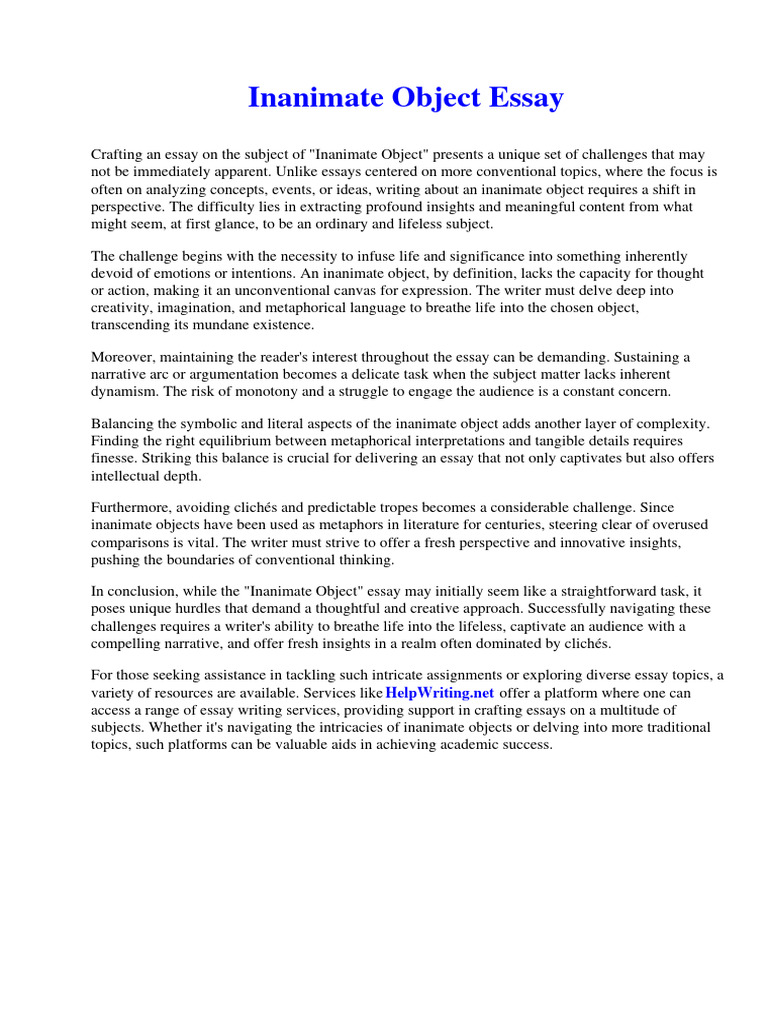 Crafting an essay on the subject of "Inanimate Object" presents a unique set of challenges that may